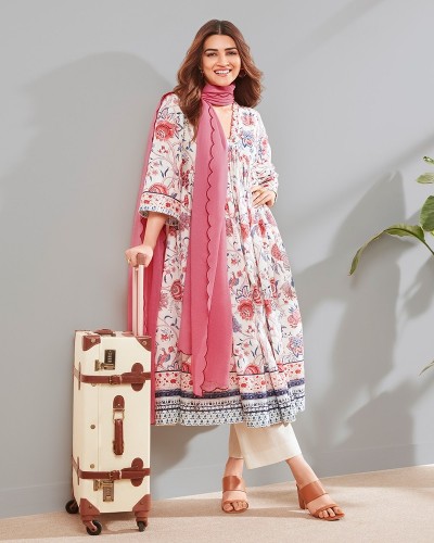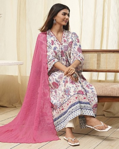 Anarkali Pure Cotton Kurta With Trousers & Dupatta