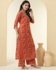 Floral Yoke Design Notch Neck Muslin Zari Straight Kurta With Trousers & Dupatta-1
