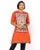 Orange Printed and Embroidered Dobby Textured Viscose Top