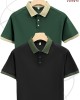Premium Polo Shirt Combo - 2 Pcs Half Sleeve jacquard Design Collar - Matte Black+ Forest Green